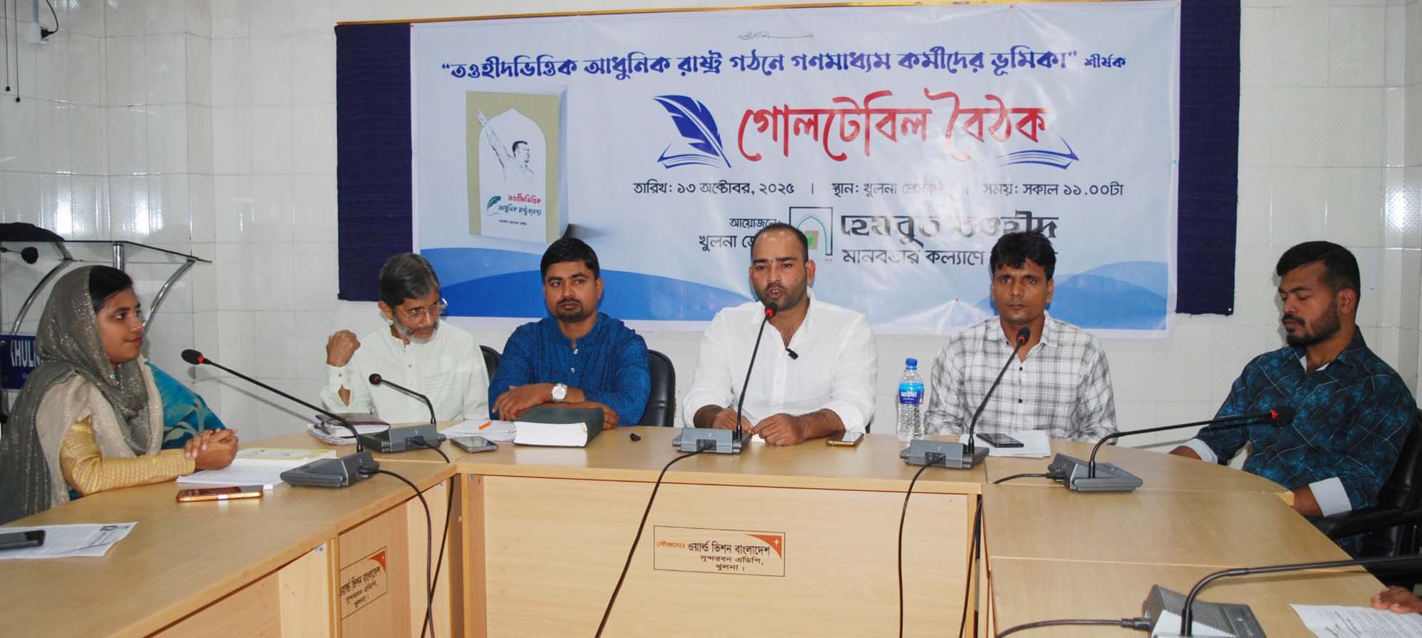 খুলনায় ‘তওহীদভিত্তিক আধুনিক রাষ্ট্র গঠনে গণমাধ্যম কর্মীদের ভূমিকা’ শীর্ষক গোল টেবিল বৈঠক অনুষ্ঠিত