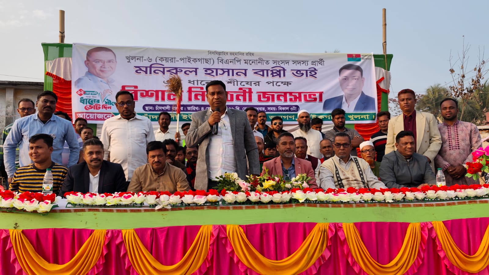 খবর বিজ্ঞপ্তির : আমাকে বিএনপির প্রতিনিধি মনোনীত করে ধানের শীষ প্রতীক দিয়ে, আসন্ন জাতীয় সংসদ নির্বাচনে আপনারা সরাসরি ভোট দিয়ে জাতীয় সংসদে আপনাদের প্রতিনিধিত্ব করার সুযোগ দিবেন। আমি এই অঞ্চলের উন্নয়ন আপনাদের সাথে নিয়েই সম্পূর্ণ করবো। বিশাল নির্বাচনী জনসভায় খুলনা-৬ (কয়রা-পাইকগাছা) আসনে বিএনপি মনোনীত ধানের শীষ প্রতীকের সংসদ সদস্য প্রার্থী এস এম মনিরুল হাসান বাপ্পী একথা বলেন।