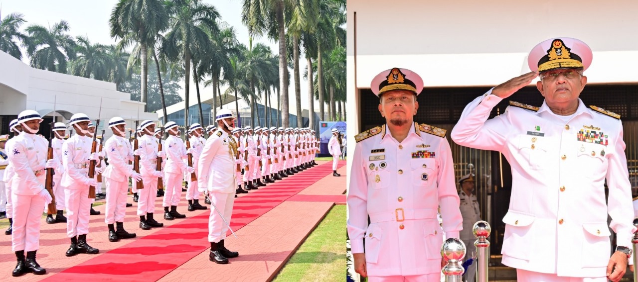 সফরের অংশ হিসেবে আজ রবিবার (০৯-১১-২০২৫) বনানীস্থ নৌবাহিনী সদর দপ্তরে বাংলাদেশ নৌবাহিনী প্রধান এডমিরাল এম নাজমুল হাসান এর সাথে সৌজন্য সাক্ষাৎ করেন। এর আগে তিনি নৌবাহিনী সদর দপ্তরে এসে পৌঁছালে নৌবাহিনী প্রধান তাঁকে স্বাগত জানান। এ সময় বাংলাদেশে নৌবাহিনীর একটি সুসজ্জিত দল তাঁকে গার্ড অব অনার প্রদান করে। তিনি গার্ড পরিদর্শন এবং অভিবাদন গ্রহণ করেন।
